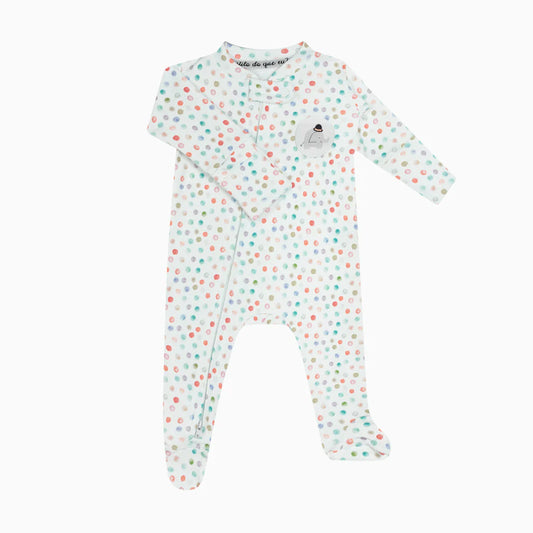 Macacão Bebê com Zíper Aquarela Estampa Bolinhas Suedine Egípcio Branco