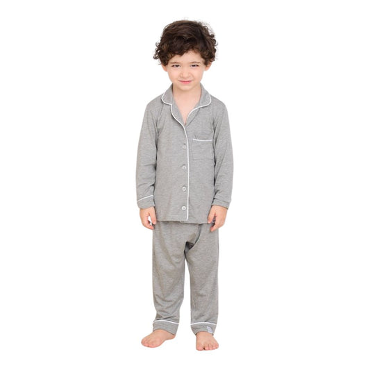 Pijama Longo Masculino Infantil Berlim em viscose cinza, a escolha perfeita para noites de meia...
