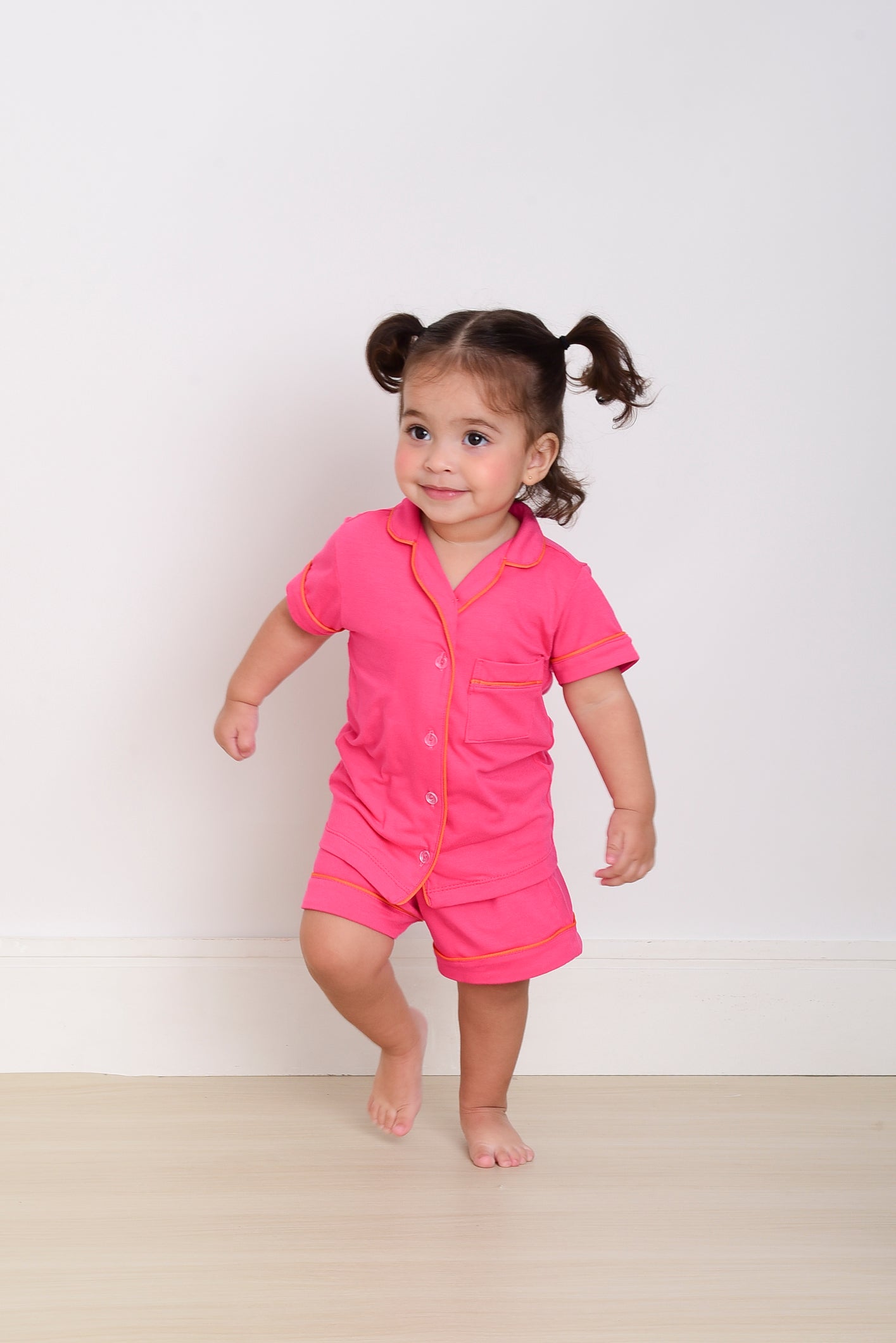 Pijama Americano Feminino Curto Infantil Clara Viscose Pink, a escolha perfeita para noites de verão.