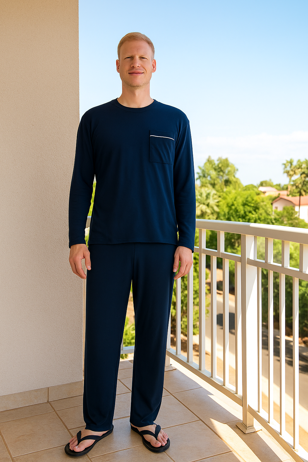 Apresentamos o Pijama Longo Masculino Adulto Veneza Viscose Marinho, um verdadeiro mimo para as noites de descanso. Este pijama é confeccionado em viscose premium ele é derivada de fibras naturais que oferecem um toque suave e é conhecida por sua respirabilidade. Ideal para noites mais quentes pois traz muito mais frescor sem perder a elegância e ainda mantém você confortável durante toda a noite.